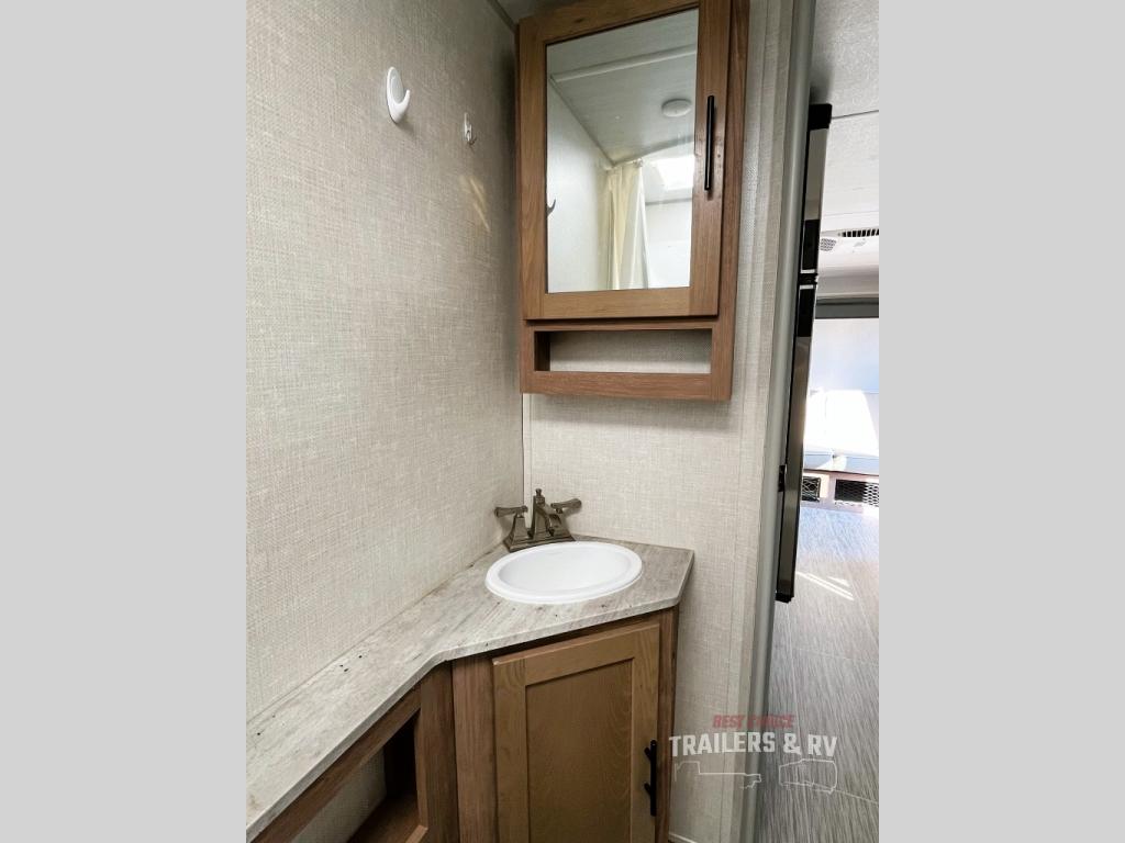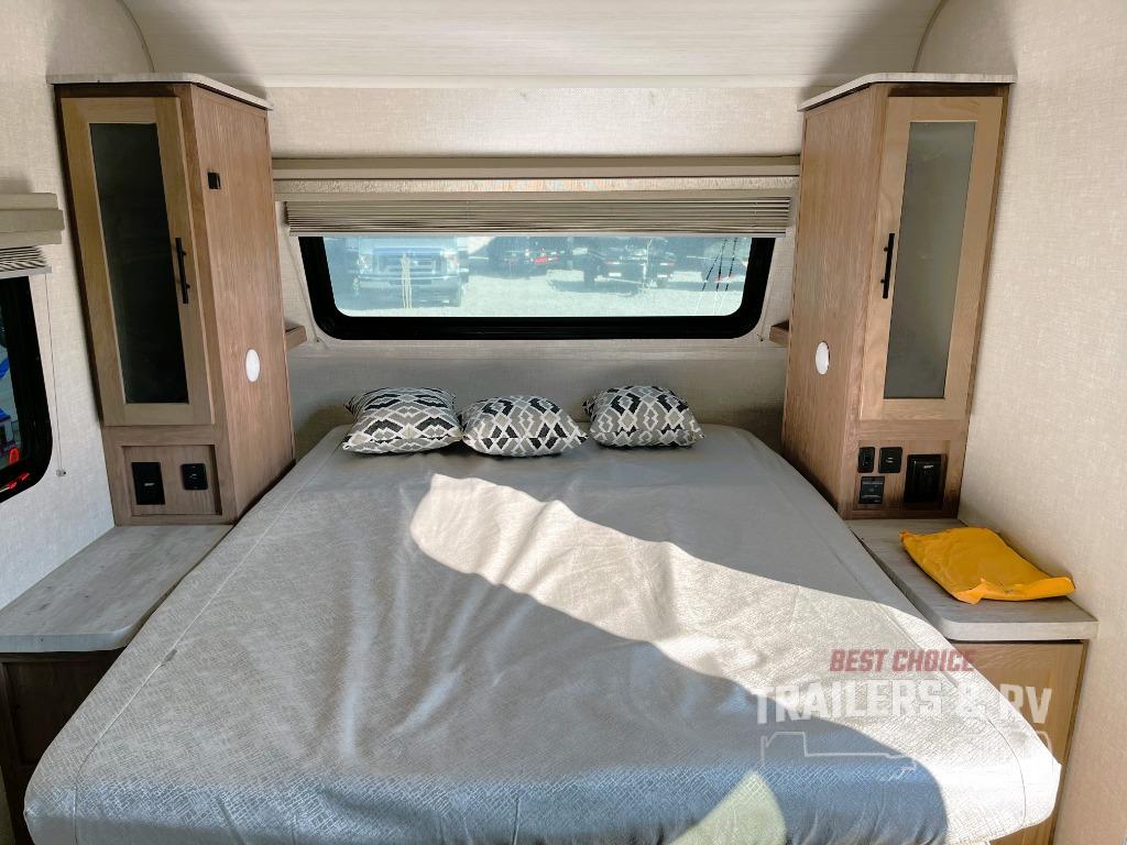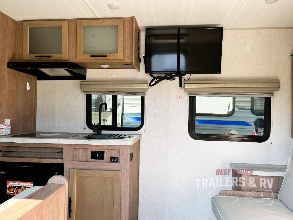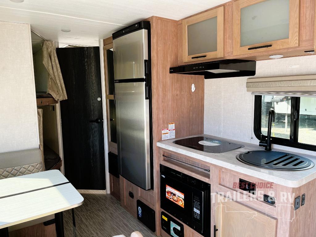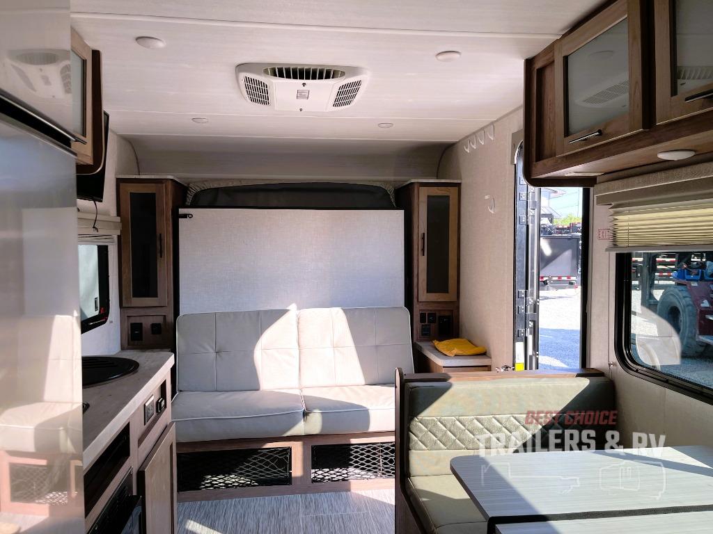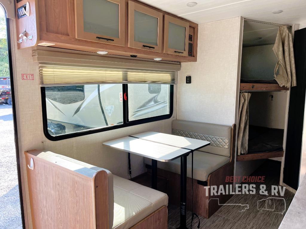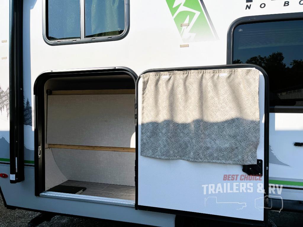 With this No Boundaries travel trailer, you can go to places you've never been before! This rugged trailer offers you lots of storage for your favorite equipment with the J-cradle kayak holder, two vortex bars, and RVT track all from Rhino Rack. The 16' power awning will protect you while you're outside having fun, and once you make your way inside, you can sit down at the 30" x 75" booth dinette for some dinner. The 44" x 74" bunks will give you extra sleeping space without taking up too much room, and the Murphy bed also utilizes space well by folding away during the day to reveal a sofa.