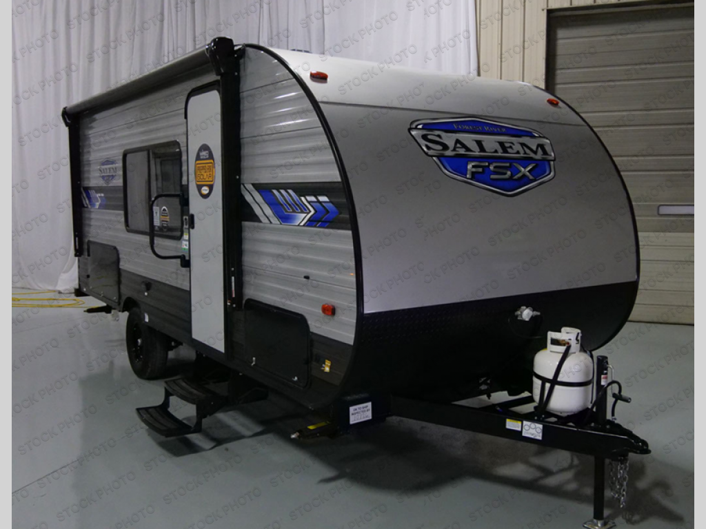 Each one of these Forest River Salem FSX travel trailer and travel trailer toy haulers are fully featured, light weight, and easy to tow making them perfect for a first time or seasoned camper! They are built with a SuperFlex one piece roof, a powder coated I-beam frame, and an aerodynamic front radius profile for better wind resistance. With the largest in class opening panoramic windows, you will have a great view of your beautiful surroundings and enjoy fresh breezes of air throughout. A diamond plate front rock guard will protect your unit from road debris and the Tuffcoat scratch resistant exterior paint helps to keep any dings or bumps from scratching it. The Best-In-Class package comes with an AccessiBelly enclosed underbelly to keep your units vitals safe through every season, a XL folding grab assist handle to safely enter and exit, and an upgraded appliance package to prepare your best meals. Come find the model that best fits your needs today!