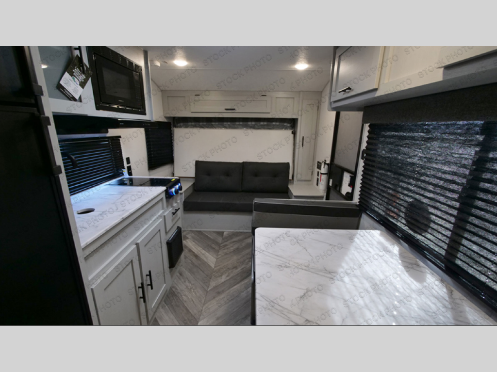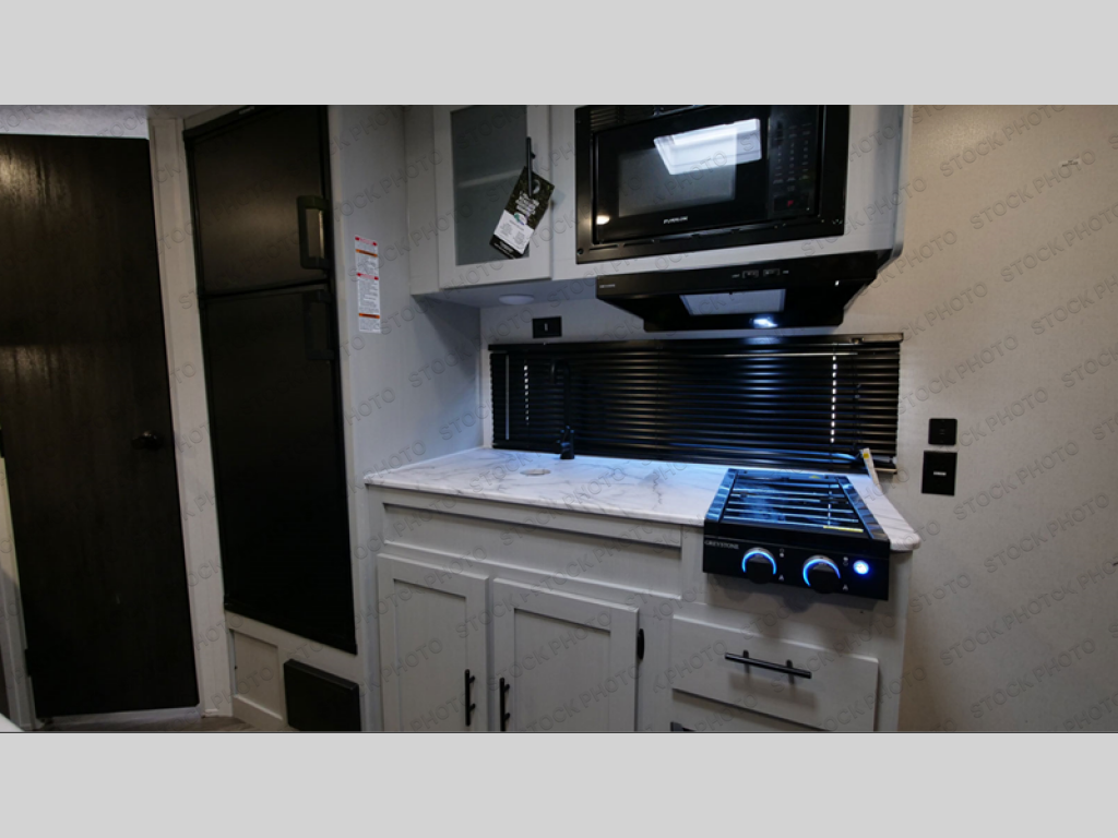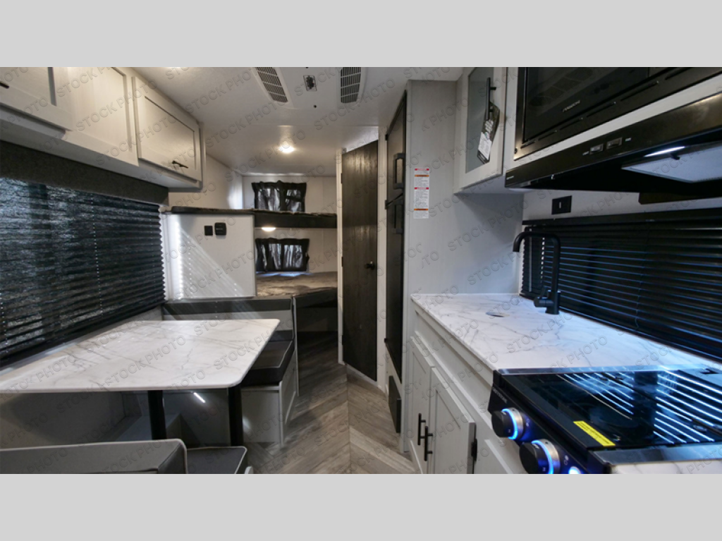 No need will go unmet with this travel trailer! It features a front Murphy bed that has a 60" x 74" queen bed to sleep on and a sofa with storage access to sit on during the day. The corner set of 48" x 72" double bunk beds come with storage to keep things out of the way and are conveniently next to the rear corner bathroom which has a 36" x 24" shower to freshen up in each morning. You can prepare your best home cooked meals indoors with the two burner cooktop or head to the optional outside LP griddle to fry up some burgers while breathing in some fresh air. Enjoy your meals, play card games, and even sleep at the booth dinette. You will also appreciate the outside shower and the front exterior full pass-through storage area for all your outdoor gear.