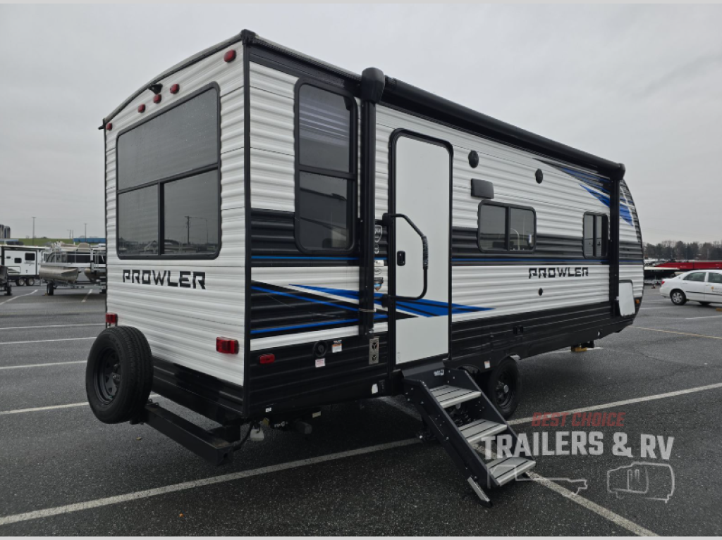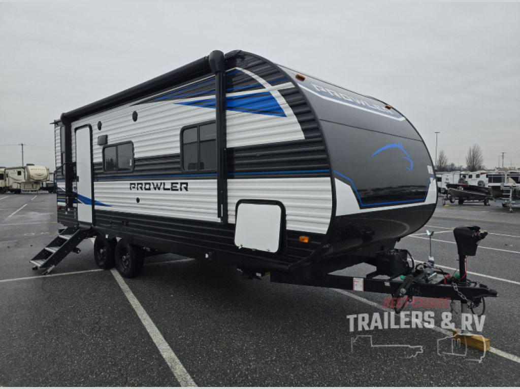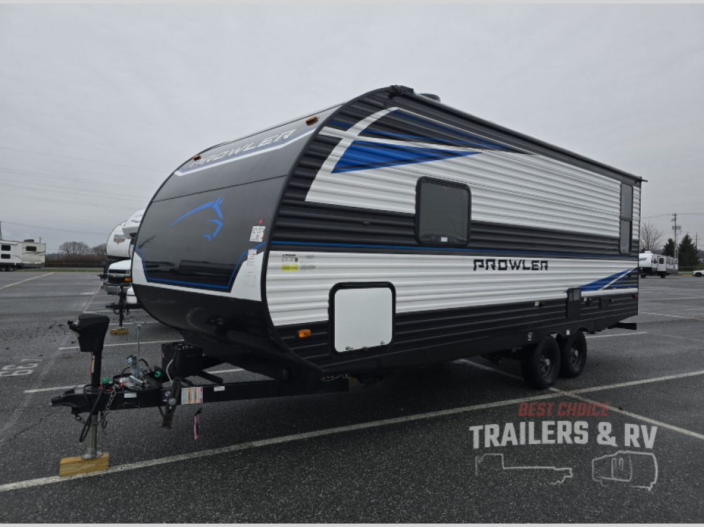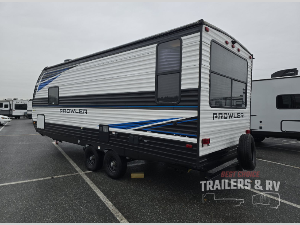 Get ready for comfortable and easy camping with the Prowler travel trailers by Heartland. These models feature durable construction with the performastructure aluminum front wall, the cambered structural steel I-beam frame, and the fully walkable roof. The MEGA bright pass-through storage features 52 cu. ft. of exterior storage with mega sized access doors, LED lights, and a finished interior to keep your gear secure. You'll fall in love with the at-home kitchen the includes Duralast countertops, a residential refrigerator, plus a stainless steel double bowl undermount sink for easy clean-up. These travel trailers also feature panoramic windows, an EZ clean interior, USB charging ports throughout, and many more comforts! Don't let the Prowler travel trailers slip away. Choose your favorite floorplan today!