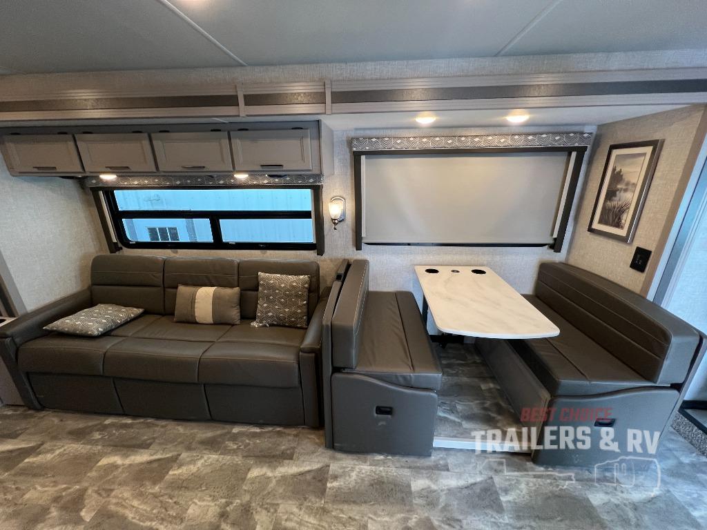 If you want to know what true luxury is like, check out this Windsport Class A gas motorhome! The best thing about this coach is the inclusion of a full and half bathroom. Because the half bathroom can service your family or friends in the main living area, the full bathroom can be kept all to yourself back in the master suite. There are three LED TVs to enjoy, a 39" LED TV in the living area, a 32" LED TV in the bedroom, and an exterior 32" TV. You will appreciate the extra space that comes from the large slide in the main living area, and the 70" Dream Dinette can function as a dining space or a sleeping space. This coach also gives you a closet that is prepped for a washer/dryer so that you can extend your trips.