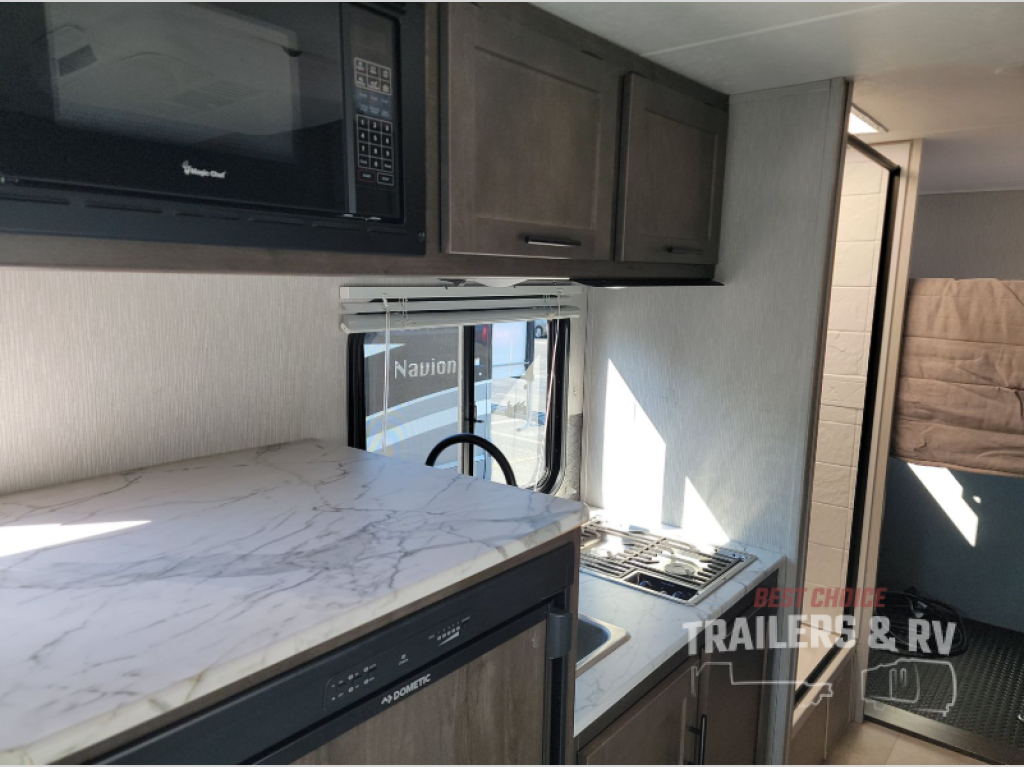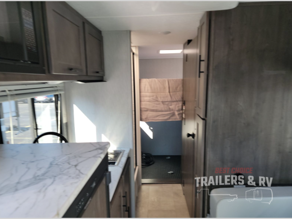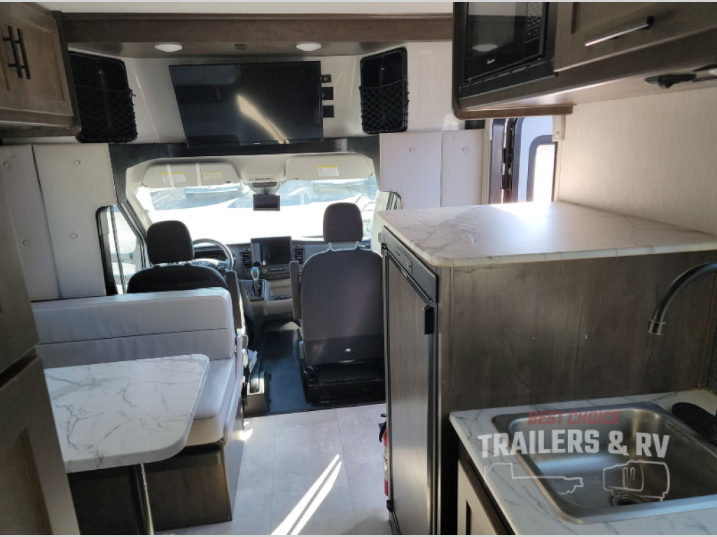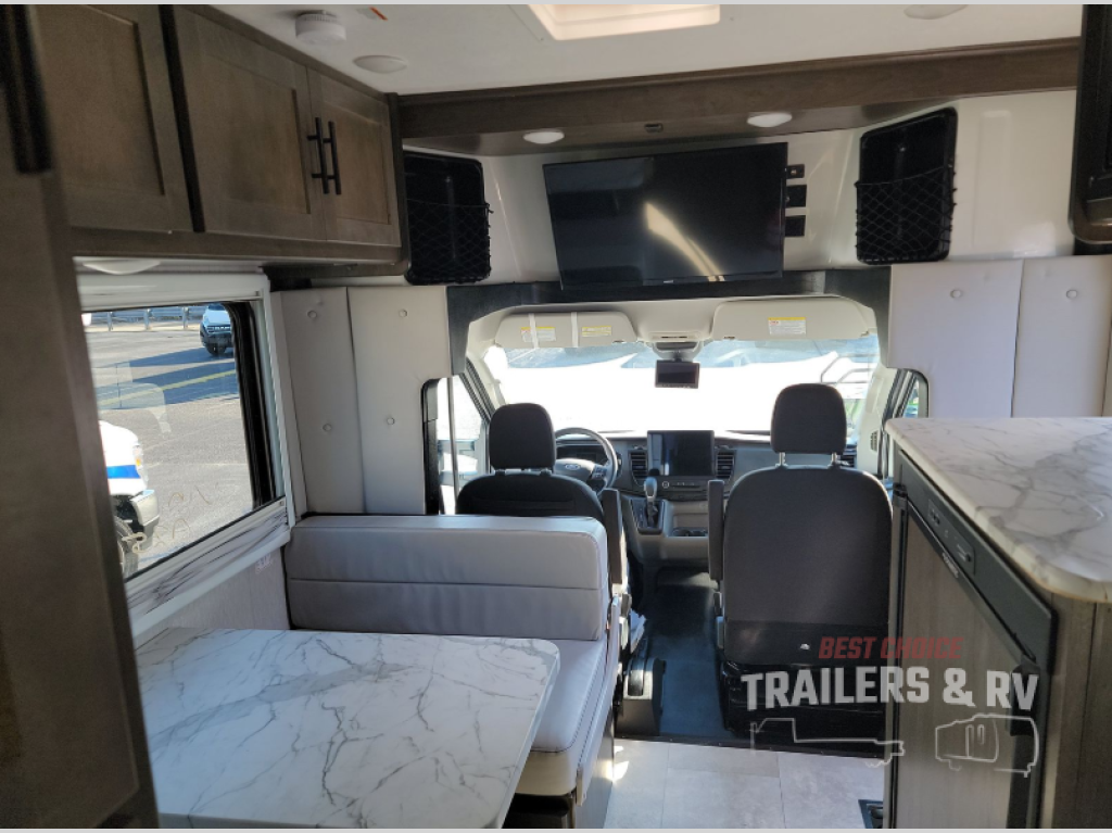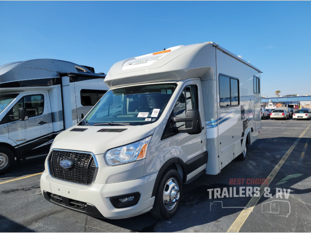 The Cross Trail EV Class C gas motorhomes by Coachmen offer livable and storage friendly coaches with an interior/exterior Smart TV and large shower facilities compared to Class B vans. Also included is the Renogy Empowered state-of-the-art hybrid electrical system designed to operate every coach function from battery power, including the A/C, and is convenient for operating systems while traveling without the use of a generator. Each has a fuel-friendly Ford transit chassis, Azdel composite vacuum bonded sidewalls, and a CrossFlex roof membrane, providing more puncture resistance. And the available all-wheel drive means you can go off the beaten path if you choose that option!