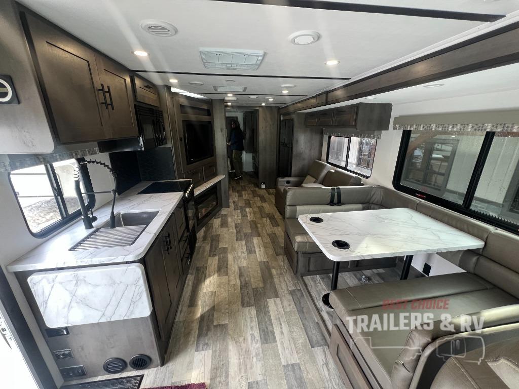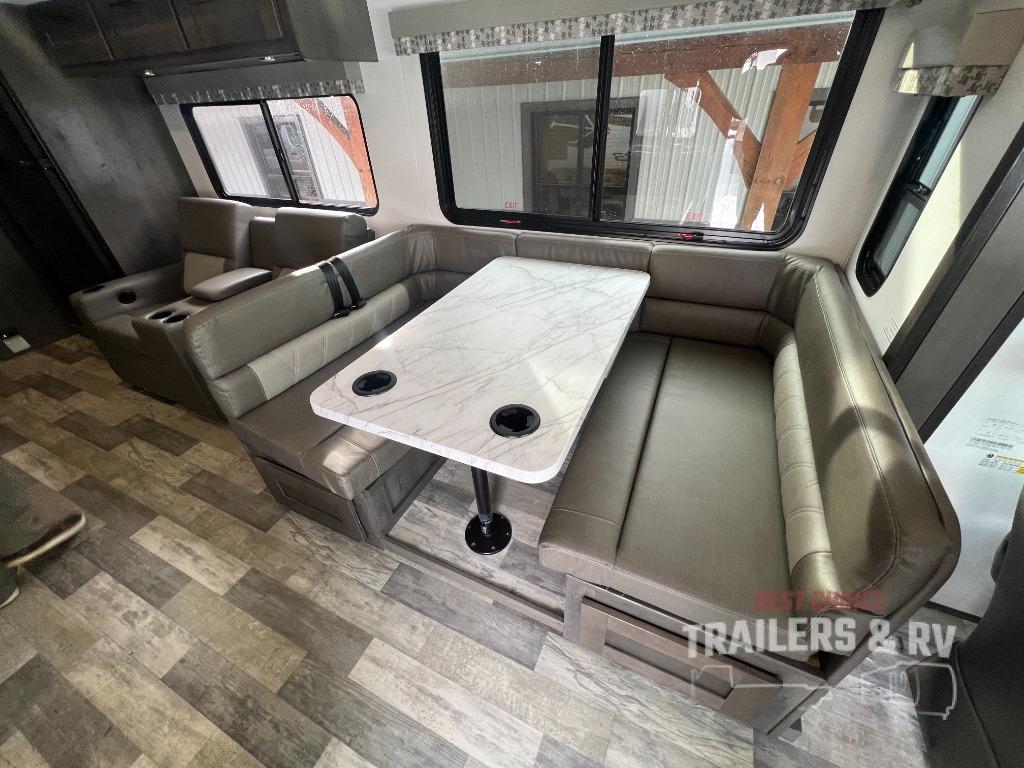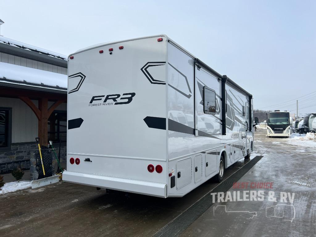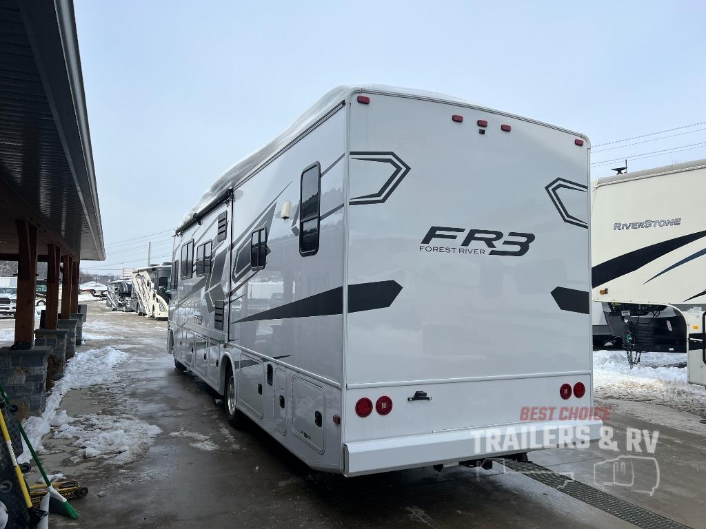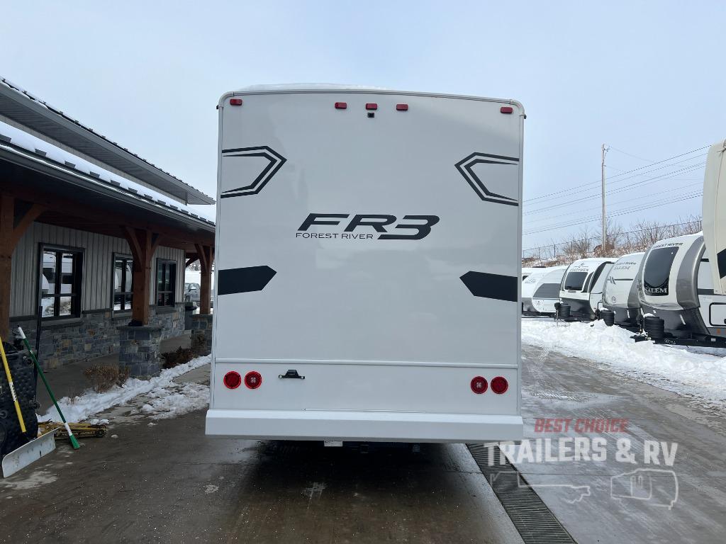With each FR3 Class A gas motorhome by Forest River, you will find an easy-to-drive coach with a spacious interior allowing you to gather with friends and family with convenience and style found throughout! Each is built with vacuum-bonded construction, a one-piece fiberglass roof with extended rain spouts, a steel firewall and A-pillar extension, Bi-LED headlamps and lower LED fog lights, and grey Rotocast storage boxes with drains. Inside, you will enjoy black hardware, appliances, plumbing fixtures, and a glass shower door frame. You will also find a stainless steel kitchen sink with a bamboo cutting board and roll-up dryer, heavy-duty full-extension ball bearing drawer guides, dual-access dinette storage with doors, and nightstands with charging stations to keep your cellphones ready for whatever is next. Make your selection today!