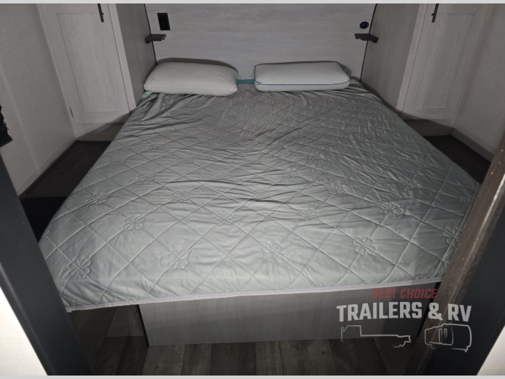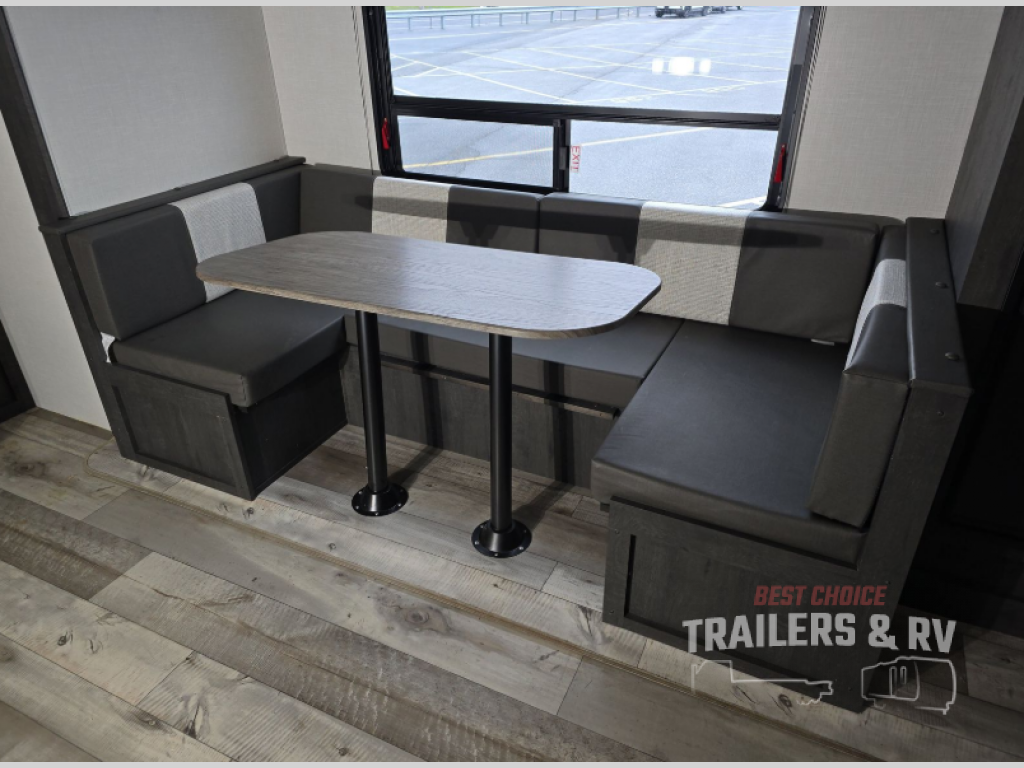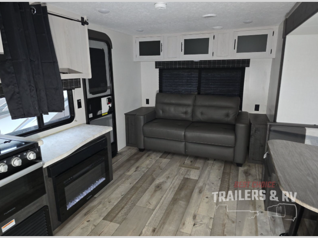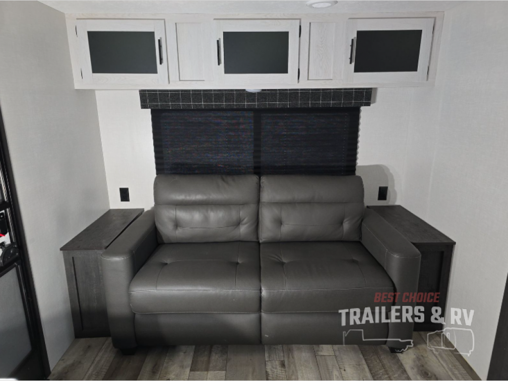 This model features dual entry doors which will make camping easier than ever! You can enter in through the front private bedroom, or the rear living area. The walk-through bath is easily accessible to everyone, and the large slide included in this model will provide the dog space to stretch out. Your crew can play a game around the U-shaped dinette after dinner, or head outdoors to relax under the 20' power awning with LED lights. You'll also find a 70" sofa in the rear living area that will be perfect for overnight guests. Don't let this model slip away!