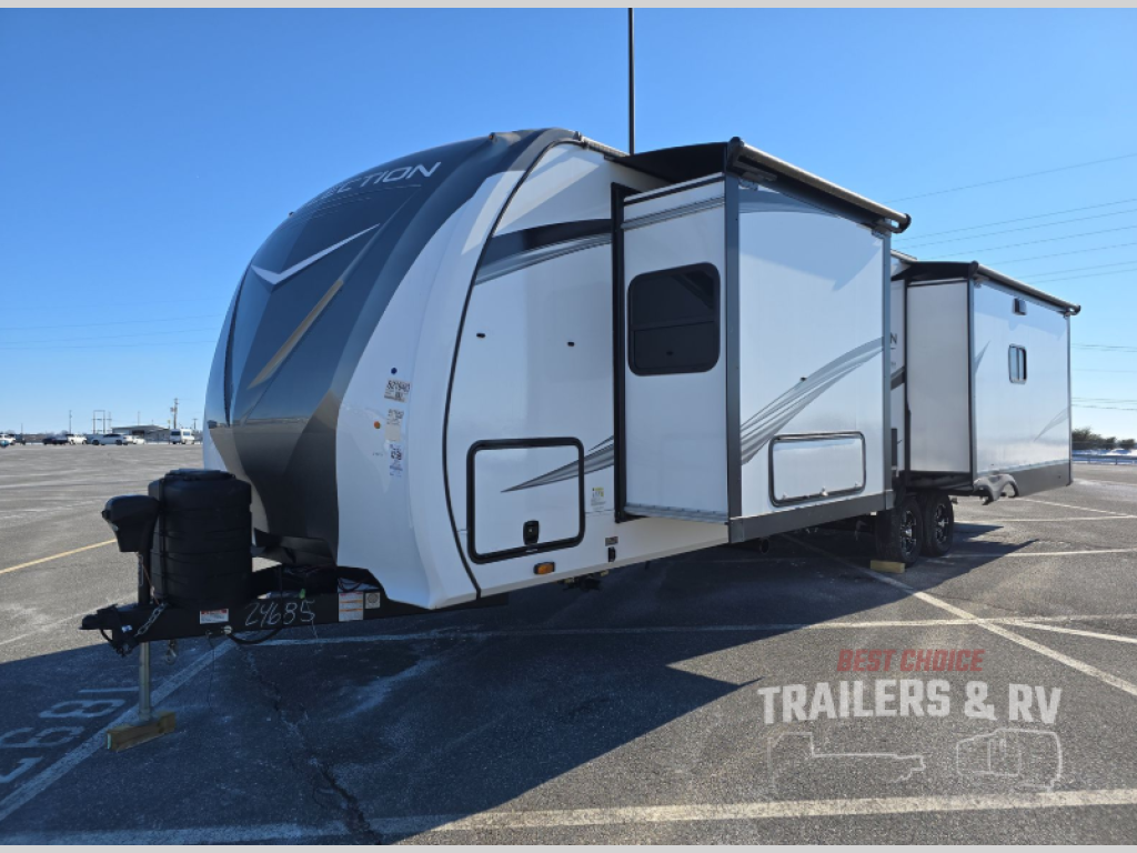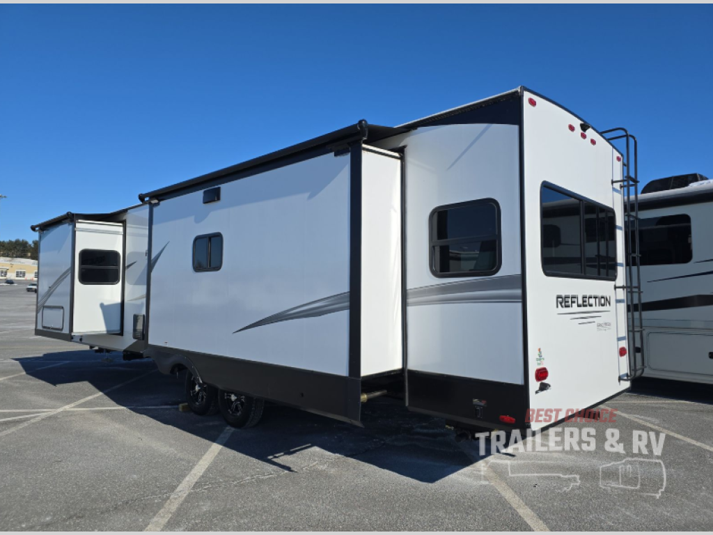 With any Reflection travel trailer by Grand Design, you will have a solar panel for off-grid camping and a 50 amp charge controller and inverter prep, a Universal All-In-One docking station, unobstructed pass-through storage, and nitrogen filled radial tires. Some other top features include the 30" stainless steel microwave, the maximum 7-foot headroom, and the ductless heating system with no vents in the floor to collect debris. Each is constructed of gel coat exterior sidewalls, residential 5" truss rafters, walk-on roof decking, a fiberglass and radiant foil roof and front cap insulation plus laminated aluminum framed side walls, roof and end walls in slide rooms. Choose luxury, value, and towability over all the others, take home a Reflection of your good taste!