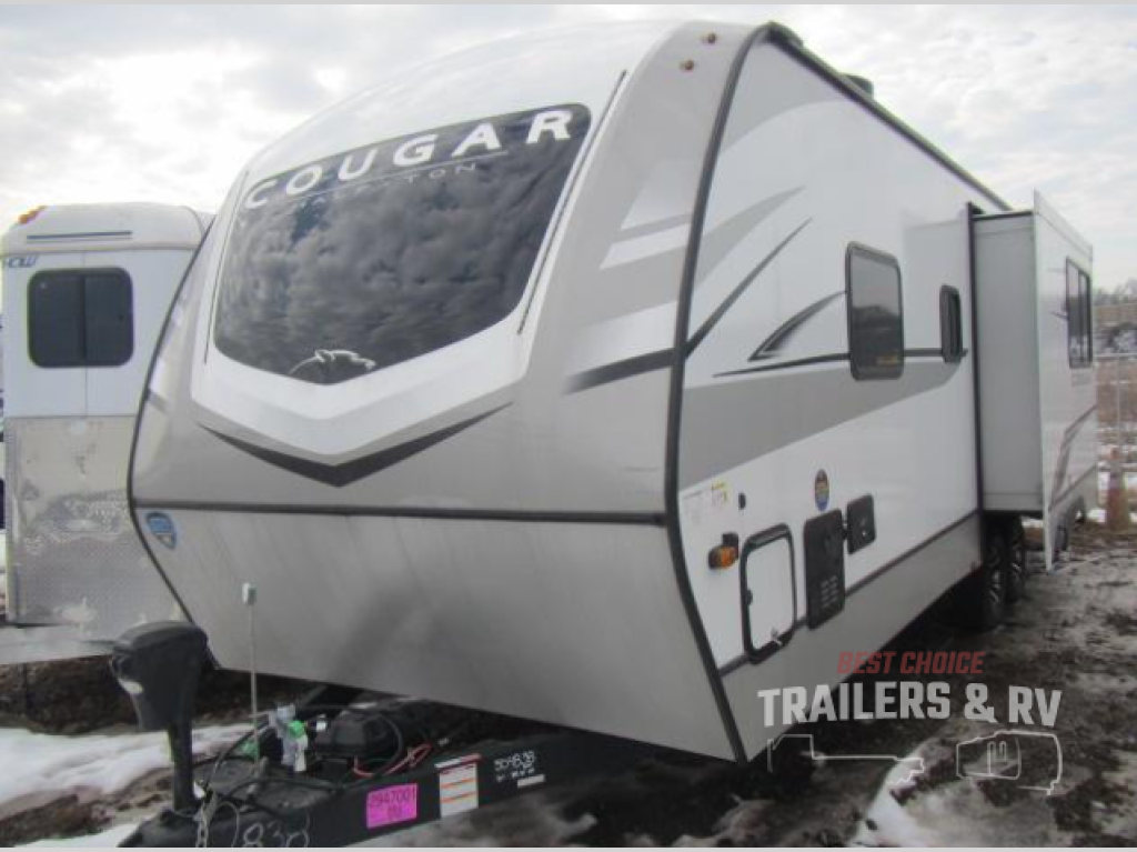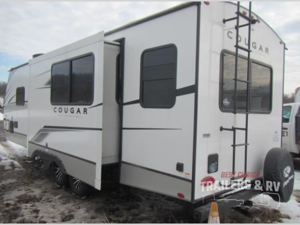 The Keystone Cougar Half-Ton fifth wheel and travel trailers are known as one of America's favorites for a reason! Some of those reasons are the exclusive features that come from Keystone, like the Winegard Air 360+ omni-directional rooftop antenna, the in-floor heating ducts, and the Hyper Deck flooring. The Cougar Half-Ton has a Climate Guard protection package to keep you safe during inclement weather, along with two roof attic vents, PEX plumbing and more. Use the 21" Furrion range with Piezo ignition to create all of those familiar meals from home, and enjoy endless hot showers with the Girard tankless on-demand water heater!