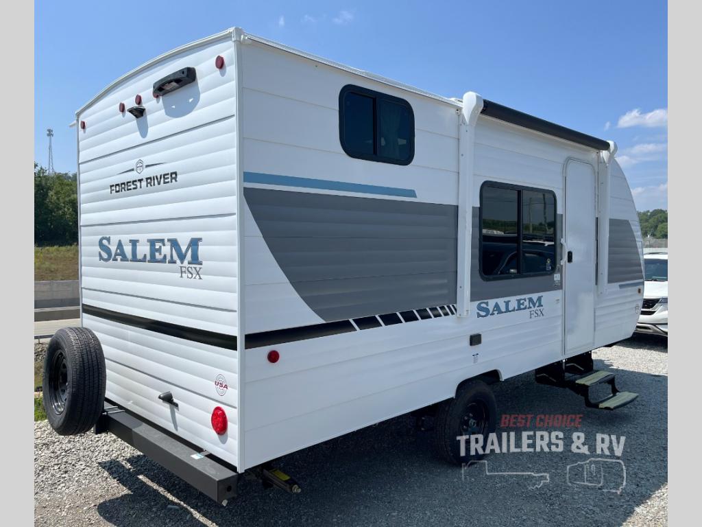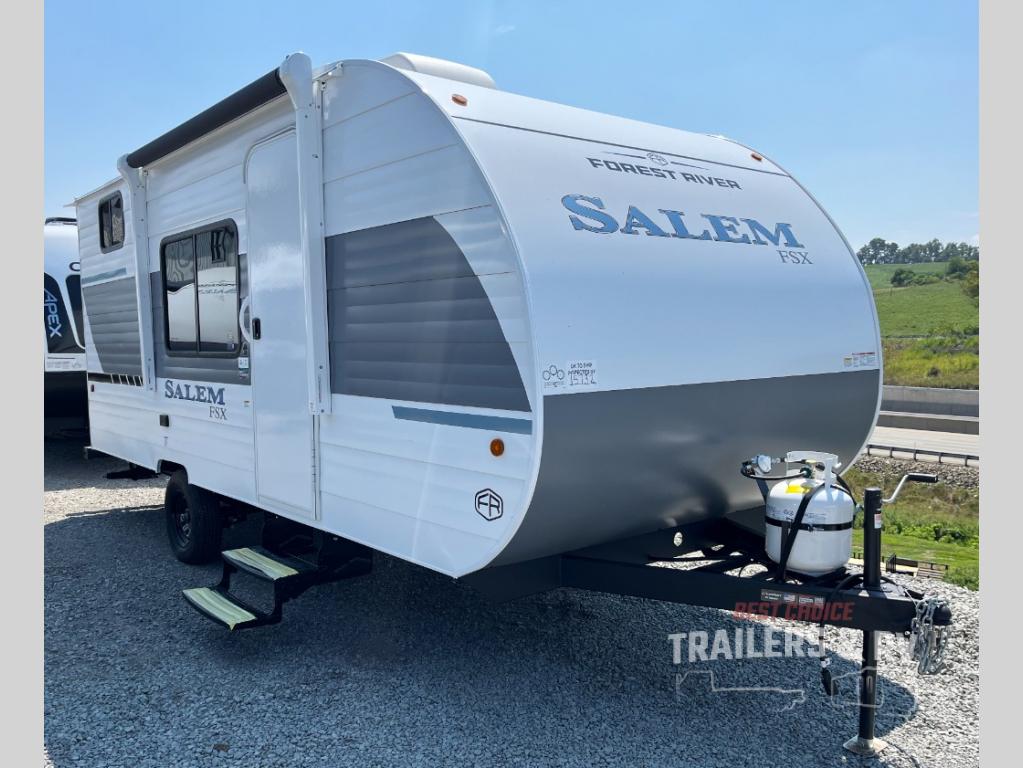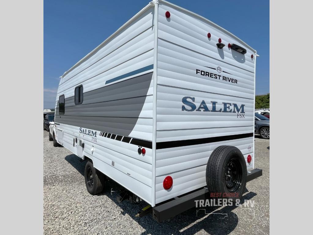 The Forest River Salem FSX travel trailers and toy hauler travel trailers are ultra comfortable and lightweight, perfect for first time or seasoned campers alike! You will love how easy it will be to relax with residential features that will make your space feel just like home, and the durable construction means you can enjoy your RV for years to come. There are a wide variety of floorplans to choose from, including couple's trailers, bunk models, and toy haulers, all with full bath and kitchen amenities and plenty of storage for all your gear!